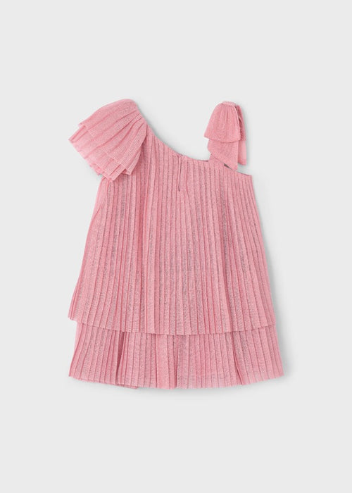 Mayoral Kız Çocuk Elbise Asimetrik Omuz Pileli Pembe