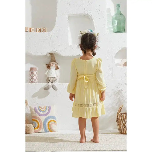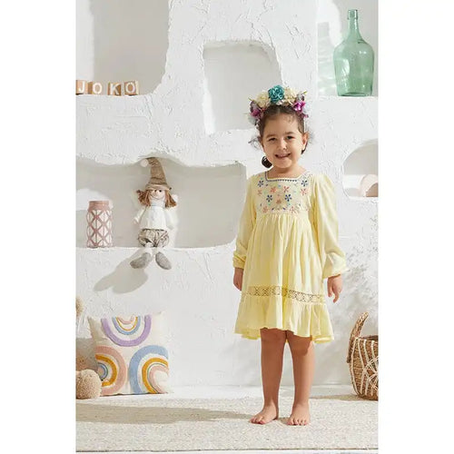 Baby Joko Elbise Şile Bezi Nakışlı Sarı Sun