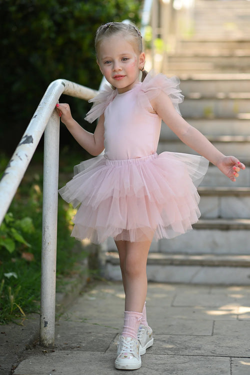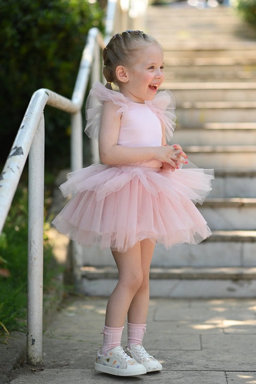 Mini Celebrities Soft Pink Tütü Takım Ürün Özellikleri Pudra tül fırfırlı body ve etek takım. (Işık sebebiyle görsel ile ürün rengi arasında ton farklılıkları olabilir.) Bisklet yaka, kol...