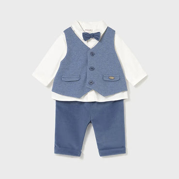 Mayoral Erkek Bebek Papyonlu Gömlek Yelek Pantolon Set Mavi