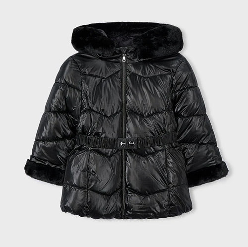 Mayoral Kız Çocuk Uzun Mont Kapüşonlu Kürklü Siyah