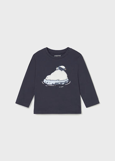 Mayoral Erkek Bebek Uzun Kol Tshirt Lacivert Penguen Baskılı