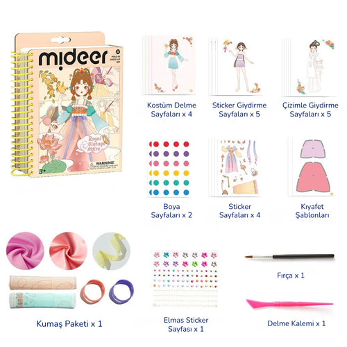 Mideer Giydirme Seti Kraliçe Kostümleri Ürün Özellikleri; Küçük modacınızın yaratıcılığını ortaya çıkarın!Bu eğlenceli ve öğretici Mideer Giydirme Seti, çocukların kendi benzersiz elbiselerini tasarlayıp oluşturmasına olanak tanır. Renkli...