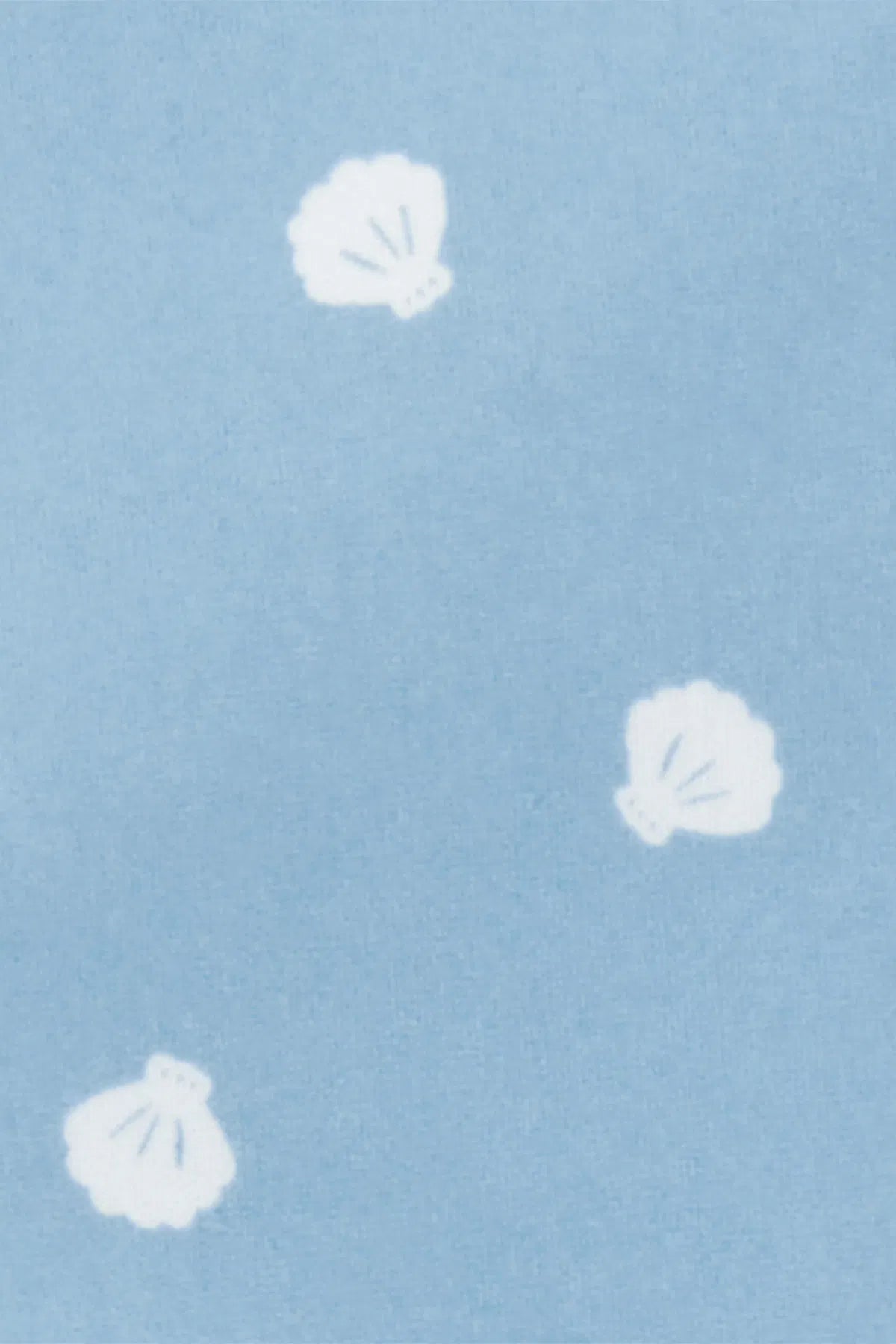 Kız çocuk deniz kabuğu baskılı güneş koruyucu mayo settir. Set iki parçadan oluşur. Üst parça uzun kollu, alt parça slip modeldir.Özellikleri: