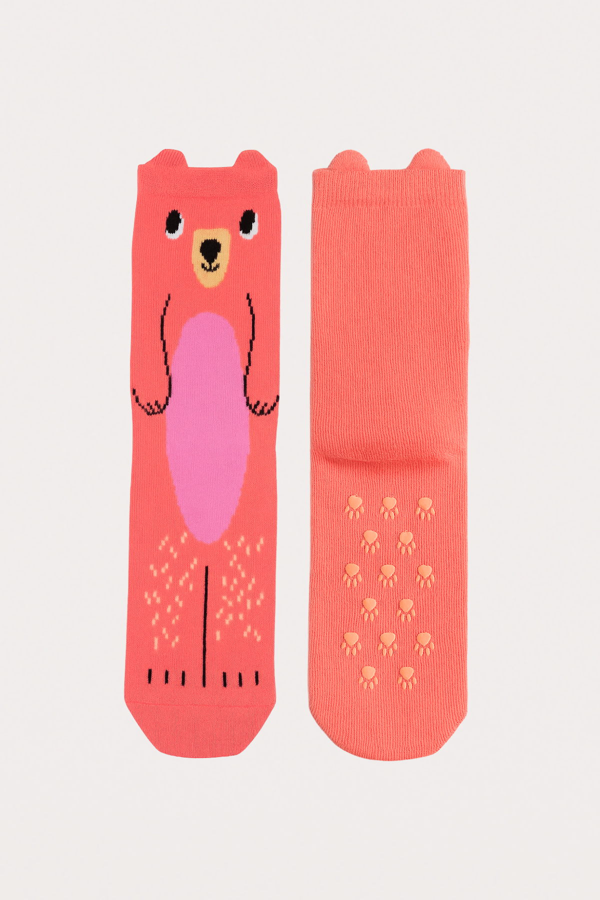 1 çift ön yüzünde ayı deseni bulunan çorap