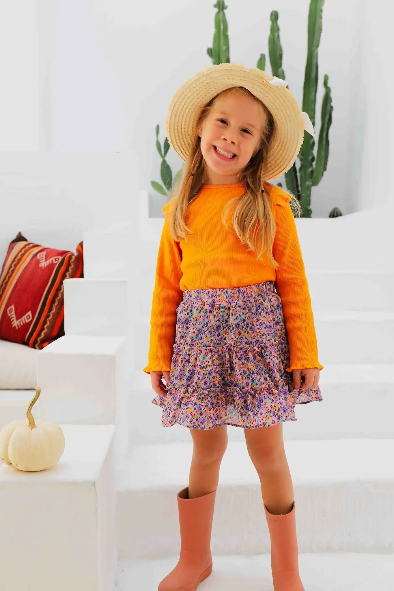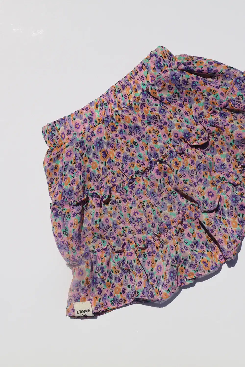 Çıtır çiçekli katlı şifon etek, astarlıdır.