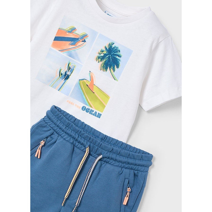 Mayoral Erkek Çocuk Kısa Kol Tshirt Şort Takım Mavi Beyaz