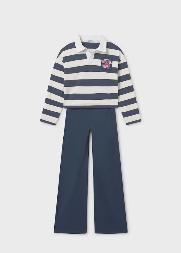 Mayoral Erkek Çocuk Polo Yaka Tshirt Pantolon Takım Çizgili Lacivert