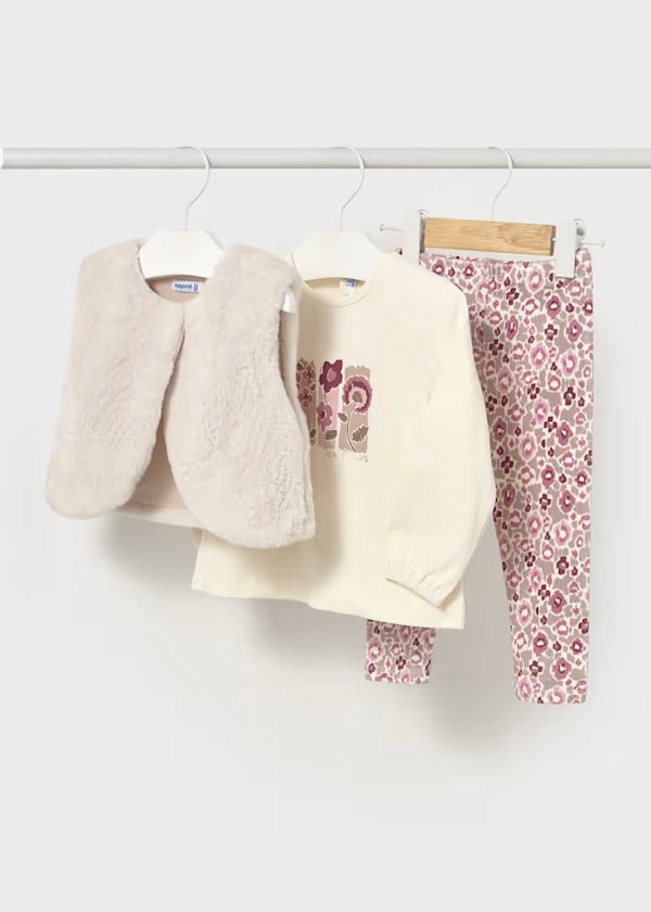 Mayoral Kız Bebek Peluş Yelekli Tayt Takım Krem
