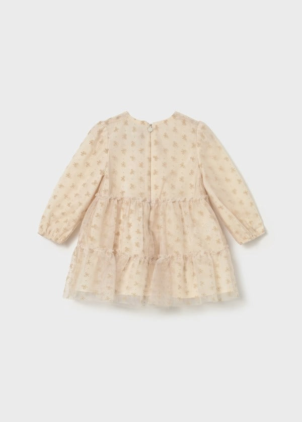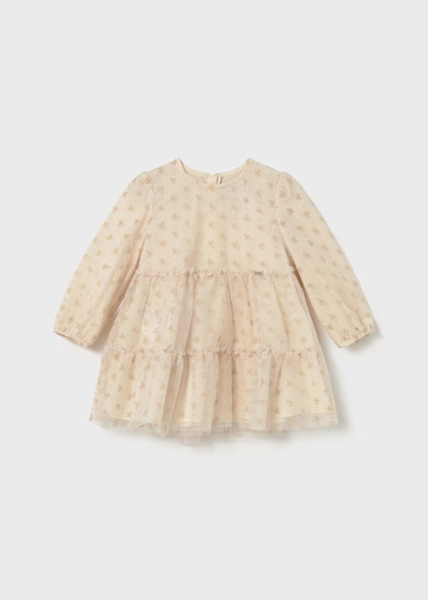 Mayoral Kız Çocuk Uzun Kol Tül Elbise Krem