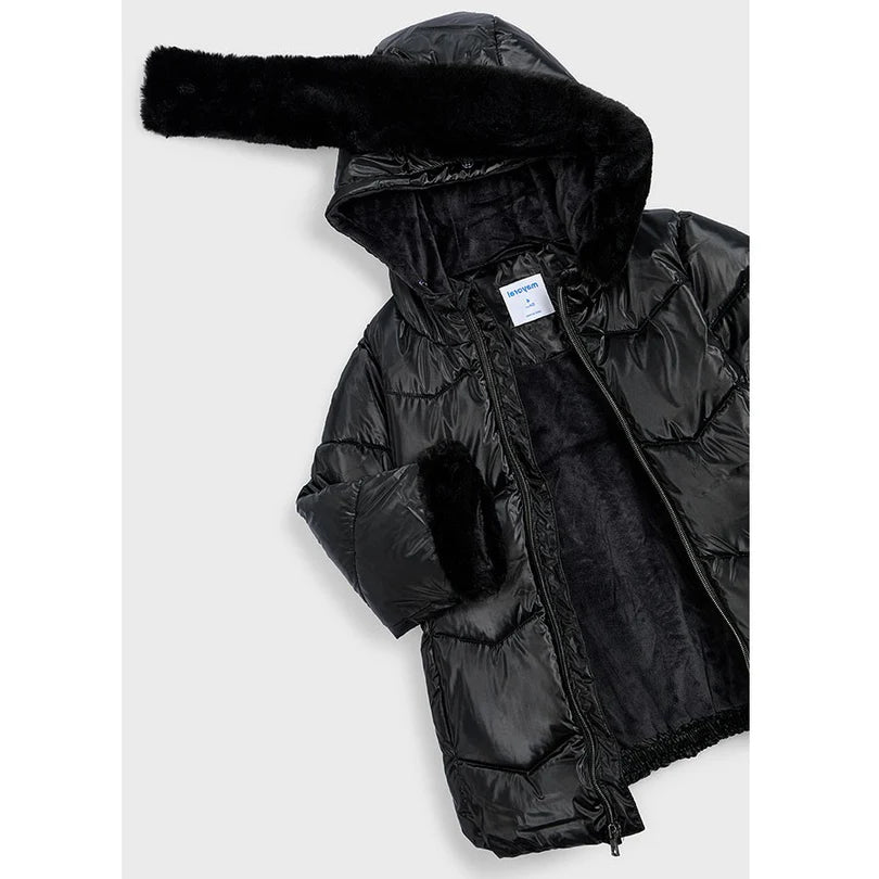 Mayoral Kız Çocuk Uzun Mont Kapüşonlu Kürklü Siyah