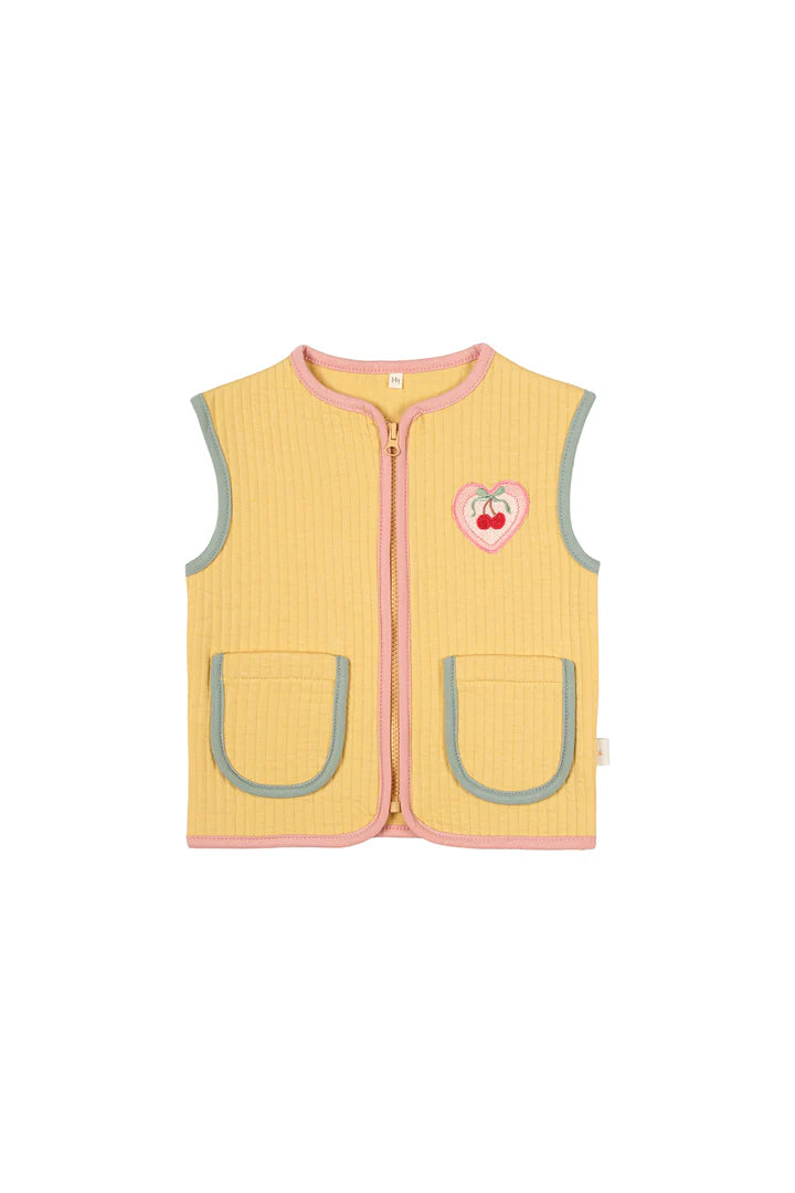 Miela Kids Kontrast Biyeli Kapitone Yelek Sarı