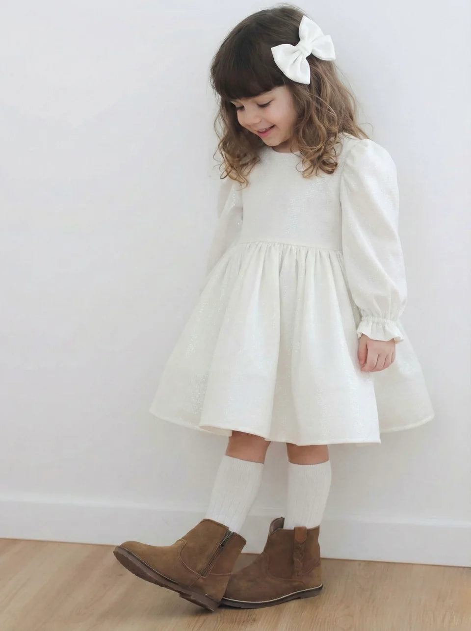 Rg Kız Çocuz Uzun Kol Fırfırlı Simli Elbise Beyaz Ürün Özellikleri;